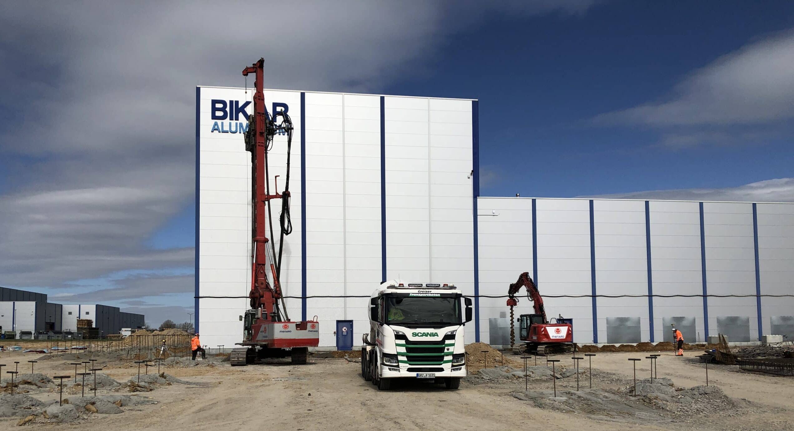 Die Gründungsarbeiten wurden in zwei Bauphasen ausgeführt. In der 1. Phase wurden alle CMC®-Säulen unter den Einzelfundamenten gegründet. In dieser Phase kamen unsere Cutter zum Einsatz. Die Cutter ermöglichen neben einer Sollbruchstelle in größeren Tiefen auch einen zeitliche Entlastung des Fundamentaushubs.