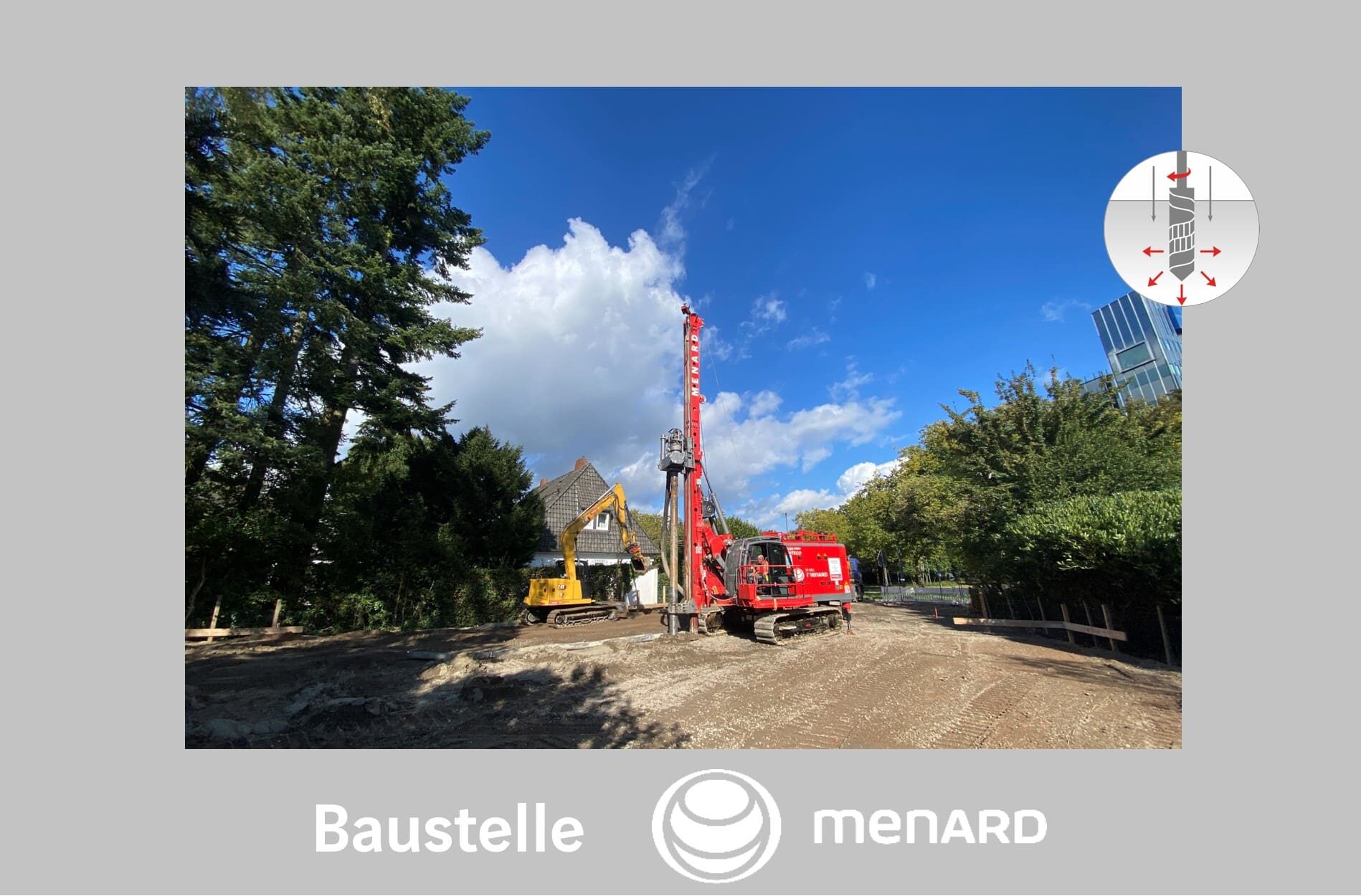 Das zuvor von einem Baustofflager und Bauhof genutzte Grundstück wurde für eine Bebauung mit Mehrfamilienhäusern erschlossen. Als baubehördliche und archäologische Auflagen wurde vorgegeben, ein Vollverdrängungsverfahren ohne Bodenentnahme einzusetzen.