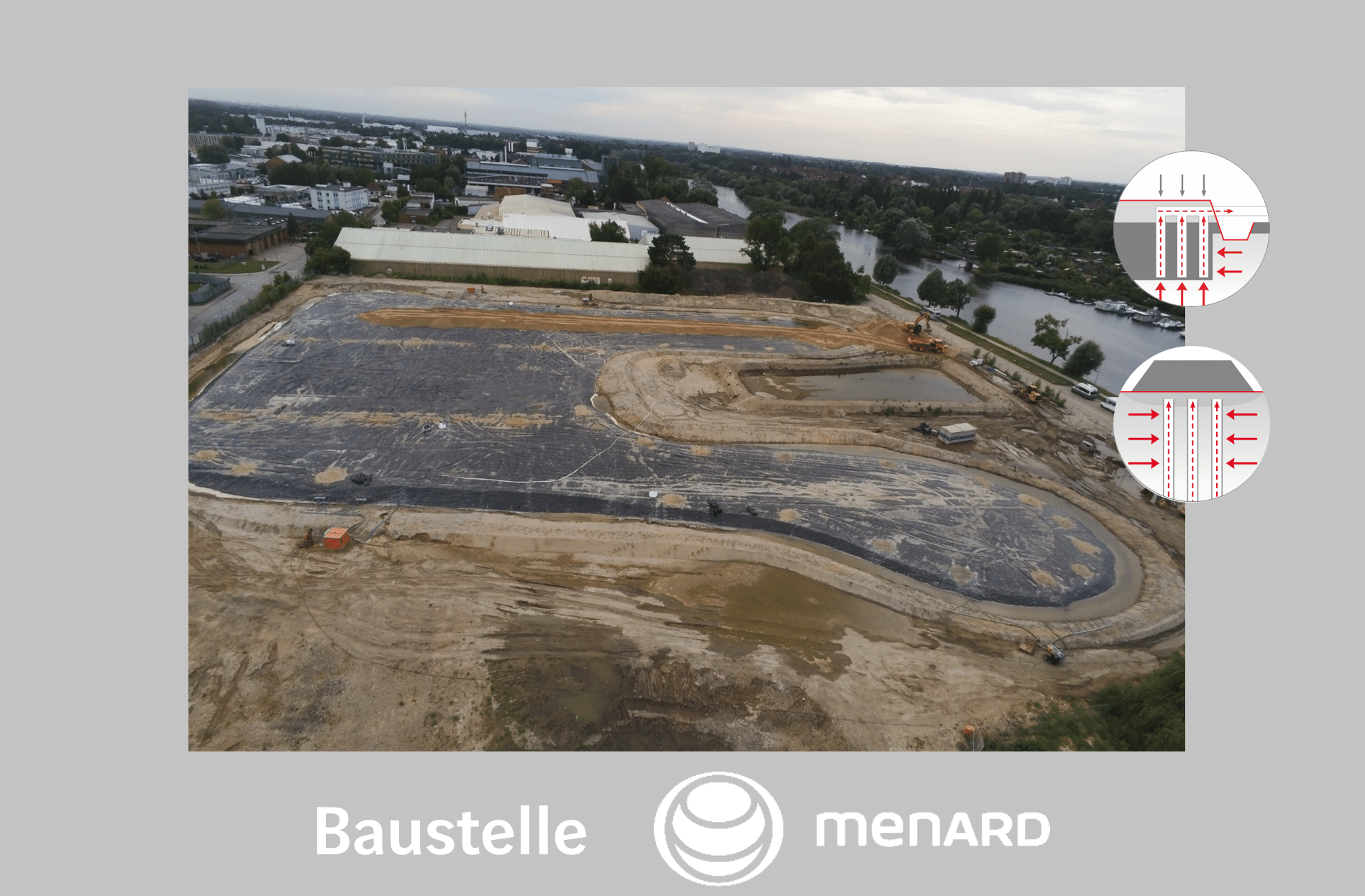 Die Lösung zur Berücksichtigung von Umweltaspekten und Effizienz waren eine optimal bemessene Anzahl an Rüttelstopfsäulen unterhalb der kreisförmigen Fundamte.